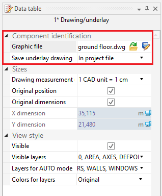 - The underlay may be stored in the project file *.ISPROJ, в който случай размерът на този файл се увеличава (идентични подлежащи файлове, поставени на няколко работни листа, не надуват файла на проекта пропорционално на броя пъти, които се използва подложката), или може да остане в отделен (оригинален) файл, на който проектът ще се отнася. Последното решение изисква, когато файлът на проекта бъде предаден на друго лице, че файловете с подложки също са обърнати и са указани пътищата за достъп до файловете в компютъра. Опциите за съхранение на подложки и пътят му за достъп могат да бъдат потвърдени в Таблица с данни в секция Идентификация на елемент.