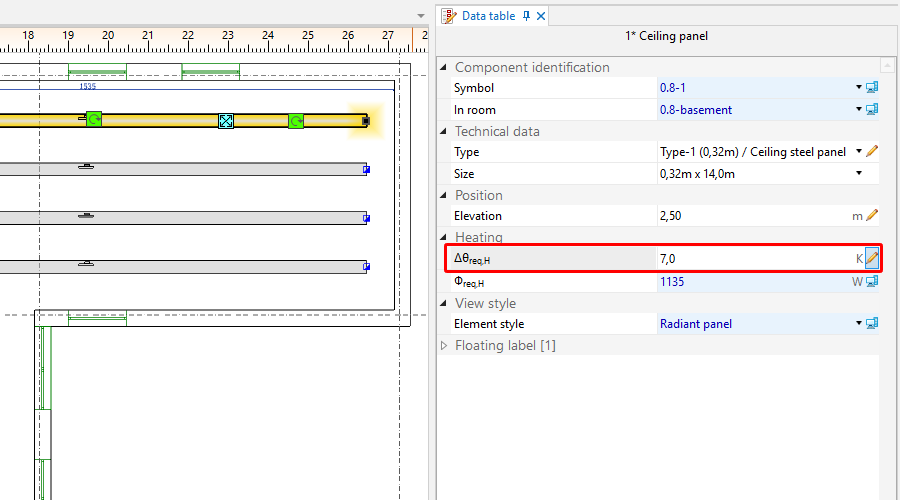 1. Radiant ceiling panel - Поставете лъчистия панел, като използвате иконата Тавенен панел in group Лъчисто