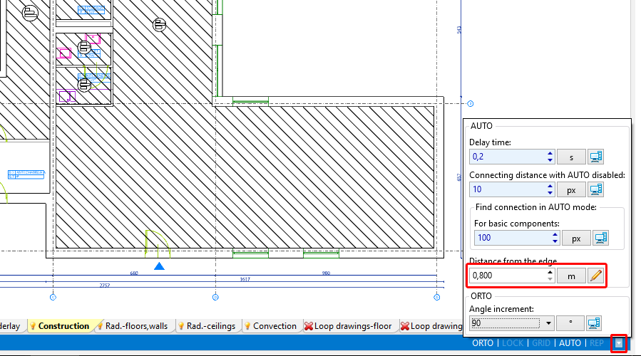 - Стандартно разстояние между таван и лъчисти панели чрез въвеждане на стойност в полето (Дебелина на окачен таван)