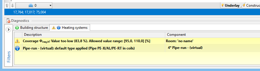 в група Изчисления. - Проверете покритието на топлопотребление в помещение в:
