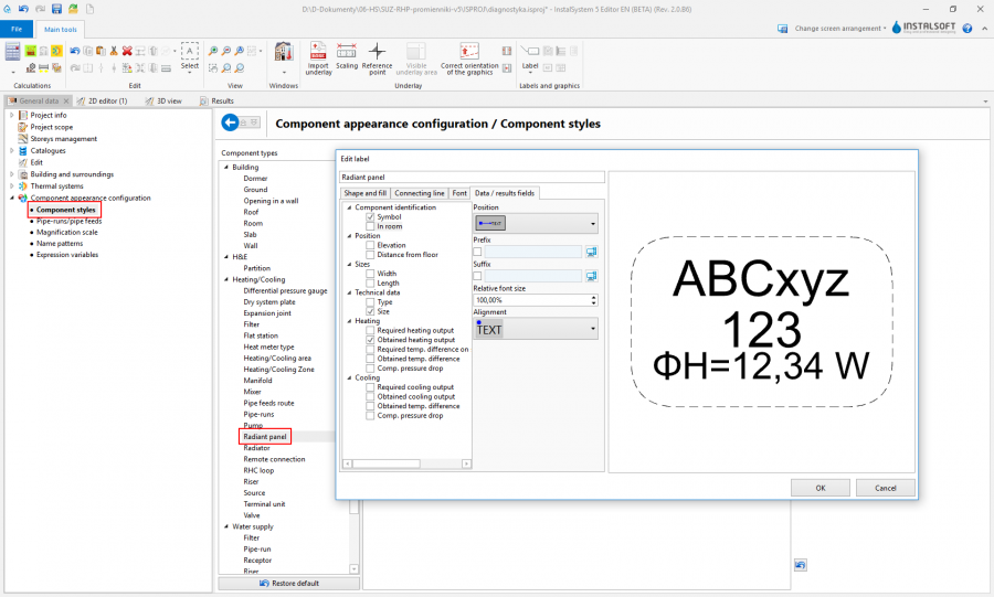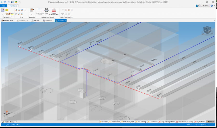 Редактиране на инсталация - лъчисти тавани панели