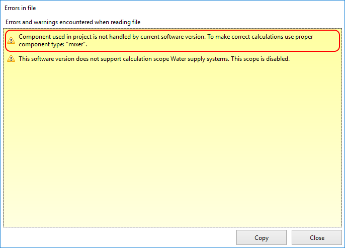 - системни елементи: нагревателни повърхности, колектори, клонове, тръбопроводи, дистанционни връзки, източници, фитинги, купчини, смесители, вентили, радиатори, блокове със специфично съпротивление на потока, разширителни фуги и др.,