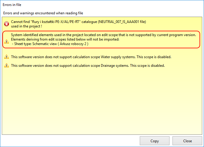 3. Данни и елементи, които не са импортирани - Проверка на диагностика на внесени неподдържани данни и елементи.