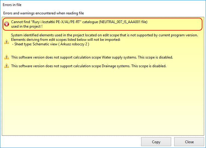 1. Неподдържани обхвати на изчислeния - Проверка на диагностика на липсващи каталози.
