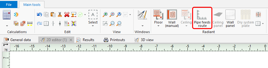 - Трасе на тръбни серпентини е наличен в секция на лента с инструменти Главни ленти с инструменти, за активни обхвати за редактиране Лъчисти подове, стени или Лъчисти тавани.